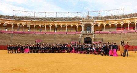 Desde las diez de la mañana y en sesión ininterrumpida hasta las dos de la tarde han pasado por la Plaza de Toros de Sevilla colegios como La Compañía de María, Las Esclavas, Highlands, Tabladilla, El Buen Pastor y Juan de Mairena, en total unos 800 alumnos que han tenido contacto por primera vez con la fiesta de los toros en este escenario único. Todos ellos asistieron entusiasmados al taller, que con una hora de duración aproximada les muestra las distintas suertes del toreo, desde el capote y muleta hasta banderillas y suerte de picar, que se realiza a lomos de dos caballos perfectamente pertrechados como si fueran a participar en la lidia de un toro.